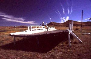 Capable as this craft was of fording deep mud holes and riding nicely on untrustworthy prairie sod, the wheels, known for the remarkable shriek they produced, became silent at the river's edge.