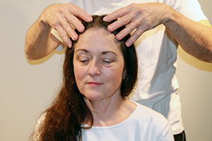 Indian/Thai Head Massage An invigorating scalp and upper body massage designed to refresh and stimulate an individual by rebalancing the body’s energy and promoting relaxation, positive energy and a sense of well-being. A low back chair, stool, or ergonomic massage chair can be used, depending on a client’s preferences. During a session the client is either sitting upright or leaning forward with the body supported and head resting on a pillow or face cradle. The massage includes work on the upper back, shoulders, upper arms, neck, ears, and face. Clients remain fully clothed. Forearms, hands and lower back can also be massaged time permitting. Use of massage oil on the scalp is optional. Different movements and techniques include, kneading, compression, and acupressure movements as well as frictioning, rubbing, stroking, squeezing, tapping, plucking, ruffling, and hacking, using fingers, palms, heel, and lateral side of the hand. The Head Massage can be combined with Thai Chair Massage for a more comprehensive session and greater joint mobilization. |